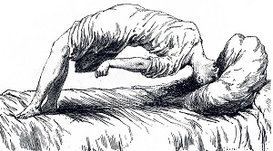 Период разгара (судорожный период) продолжается в среднем 8-12 дней, в тяжелых случаях до 2-3 недель. Основное проявление столбняка – судорожный синдром: болезненные сокращения мышц (тетанус) и длительное напряжение мышц (мышечная ригидность) и сардоническая улыбка: брови подтянуты, лоб растянут, углы рта опущены.