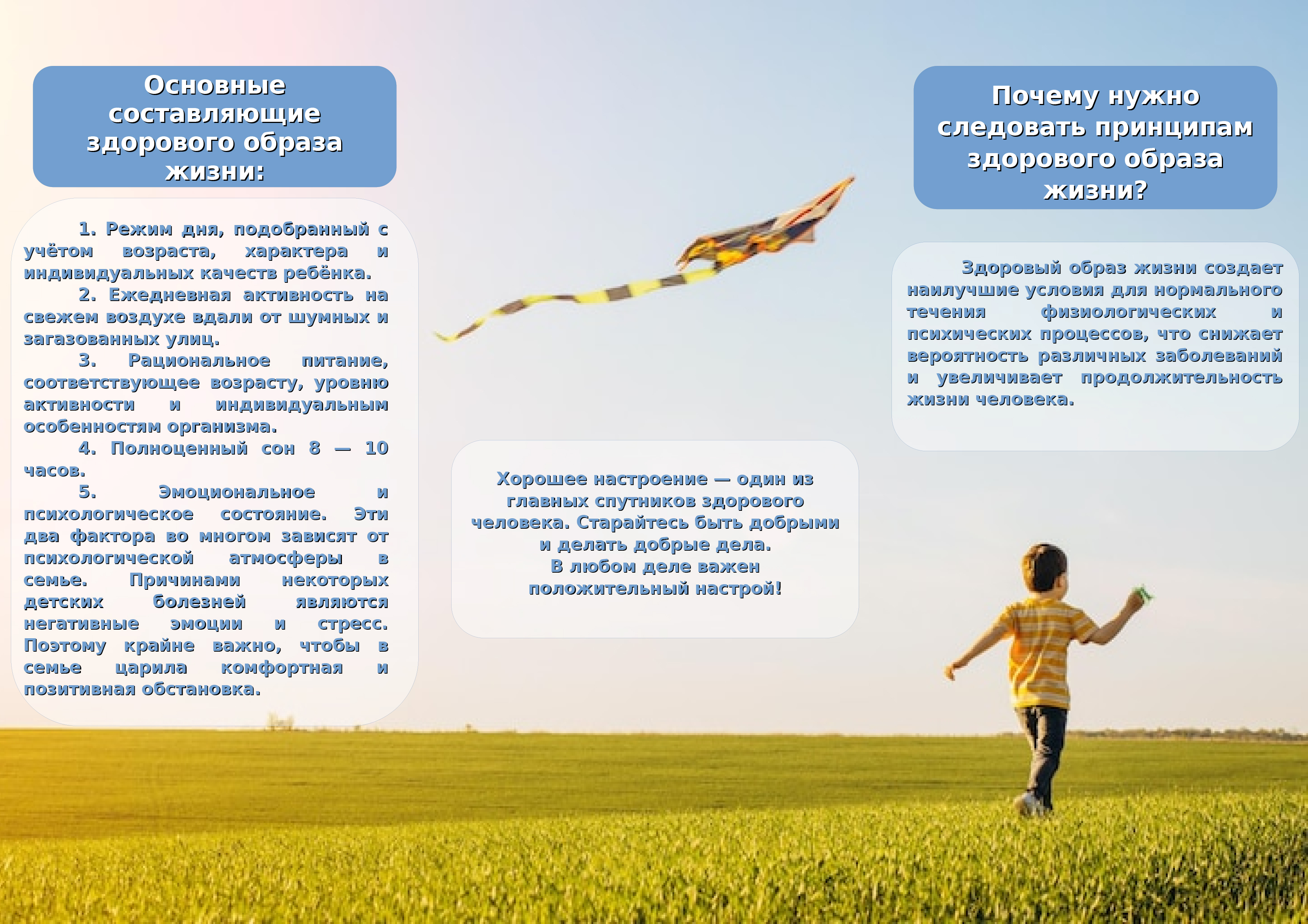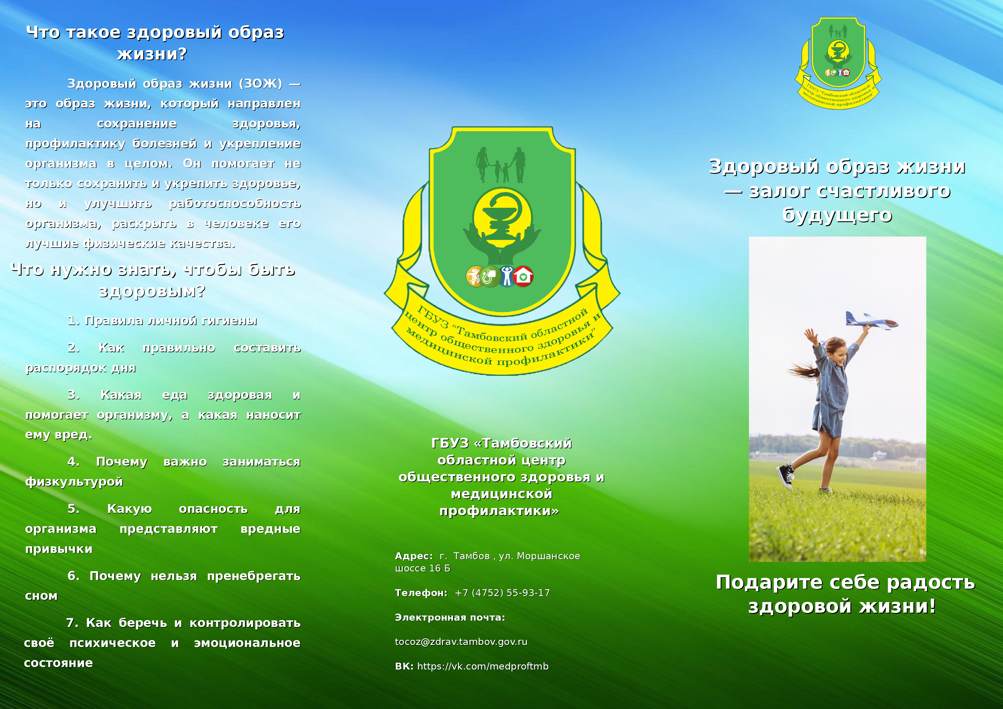 В рамках акции «Дети – наше будущее» наши коллеги из ГБУЗ «Тамбовский областной центр общественного здоровья и медицинской профилактики» разработали информационный материал, в котором подробно рассказали о том, что такое здоровый образ жизни и поделились его составляющими.