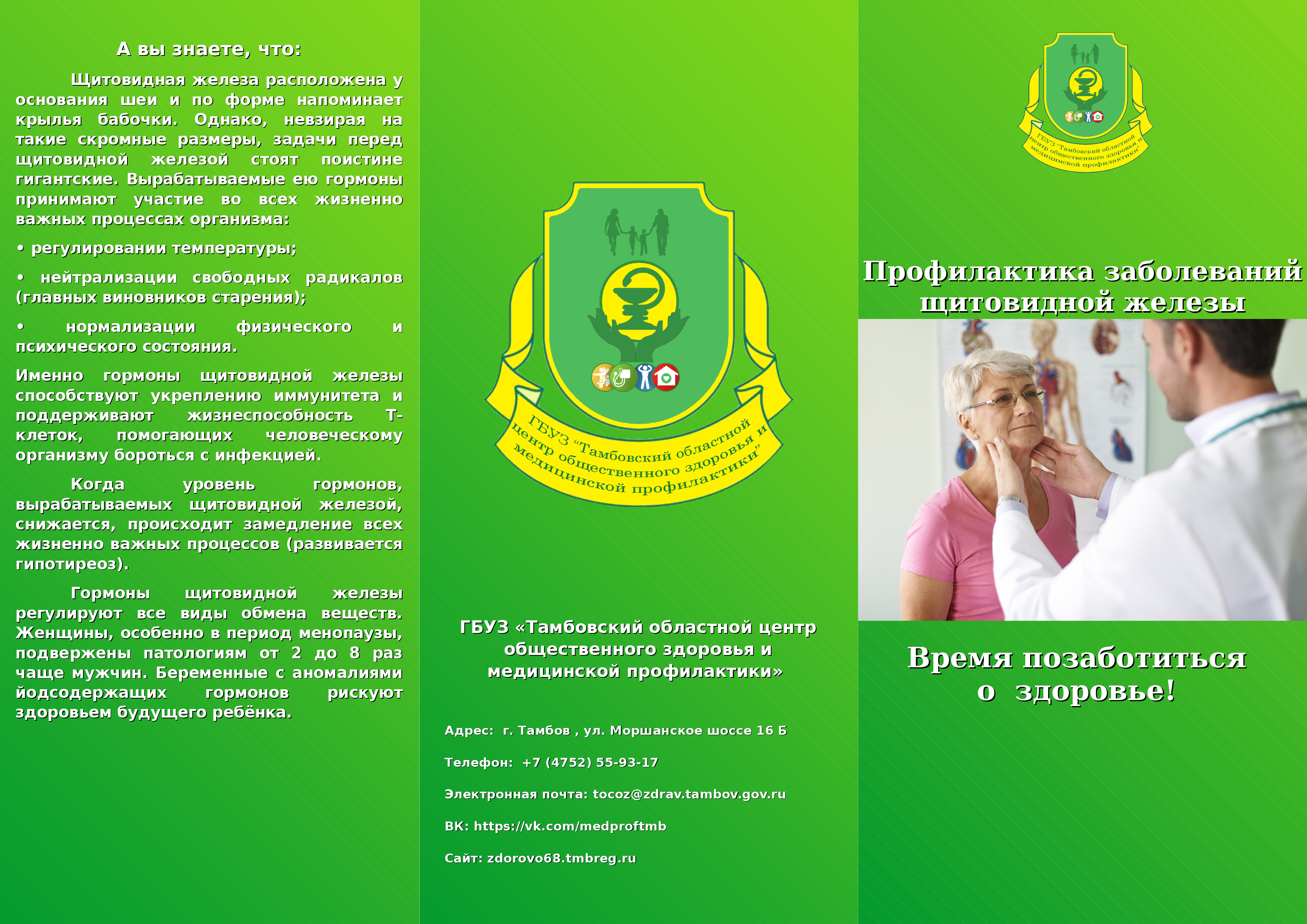 В честь Всемирного дня щитовидной железы, отмечаемого 25 мая ГБУЗ «Тамбовский областной центр общественного здоровья и медицинской профилактики» разработал информационные материалы по тематике недели.